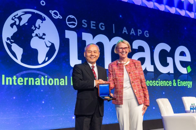Houston, TX - 04 July 2022 - Dr. Xianhuai Zhu, founder and CEO of Forland Geophysical Services (FGS), received SEG 2022 Virgil Kauffman Gold Medal Award for his contributions to the research and applications of joint tomography using both turning-ray and reflections for onshore depth imaging in complex geologic settings. Citation by Allen Bertagne, Samuel Gray, and Alfred Liaw.